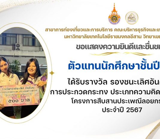 จัดโดยนักศึกษาหลักสูตรสตาร์ทอัพการท่องเที่ยวและการบริการ ชั้นปีที่3 เทียบโอน